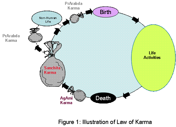 Sanchita Karma is the vast store of piled-up Karma accumulated in the preceding and in all other previous births and yet to be resolved. In other words, it is the aggregate sum of yet unseen Karmas committed during innumerable previous existences. This is your total cosmic debt. Every moment of your every day, you are either adding to it or you are reducing this cosmic debt. It is waiting to be fulfilled in your future births. So unless and until the Sanchita Karma of a Soul is zeroed, it keeps on birthing in new physical bodies, in order to exhaust it’s balance Sanchita Karma.