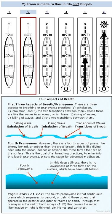 Beginning of joy in meditation: This balancing of Ida and Pingala, and causing Prana to flow evenly, this wedding of sun and moon, is the real beginning of joy in meditation. All of the other practices up to this stage are to bring this state of peaceful mind, from where the real practice of meditation begins. From this point, meditation is a joy, not a discipline. For, why would anybody have to cultivate discipline to do that which is only bringing joy?